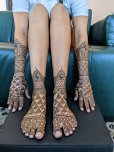 "Nisha with Henna Arts is truly awesome! She is very talented but her awesomeness doesn't stop there she's always happy, smiling, and joy to converse with. She was recently the henna artist for two of my friend's weddings. For this last wedding she was worked on probably 50 ladies or more over several hours. She works fast! She also uses high quality henna with no chemicals. The henna dried VERY fast and absorbed very quickly."