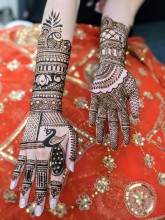 "Nisha is so talented and has a lovely personality. She free hands amazing art on human canvasses, leaving everyone feeling more festive and attractive.You can provide her pictures of your inspiration or let her choose a design. Traditional or modern, geometric or abstract - Nisha is multitalented! The flowers she paints are particularly beautiful.She is creative, open minded and fun, too!"