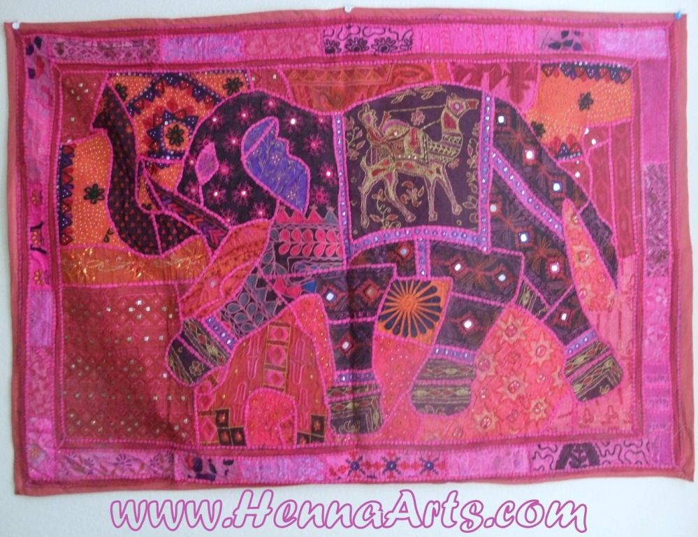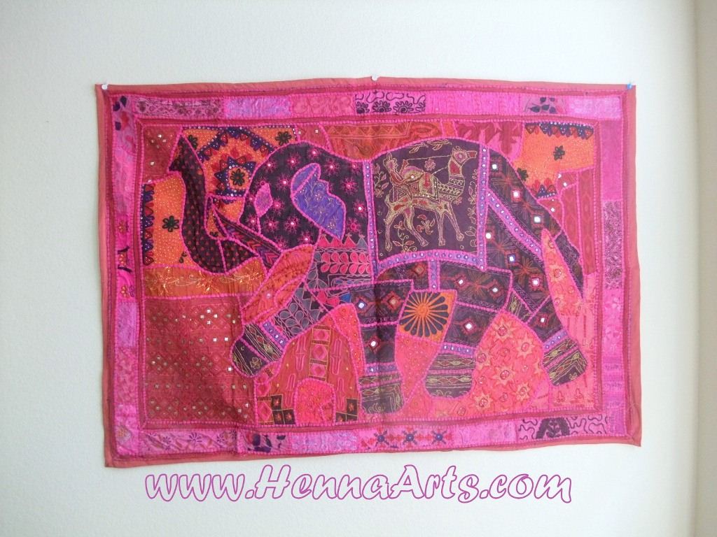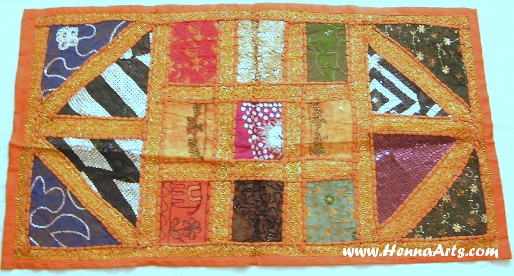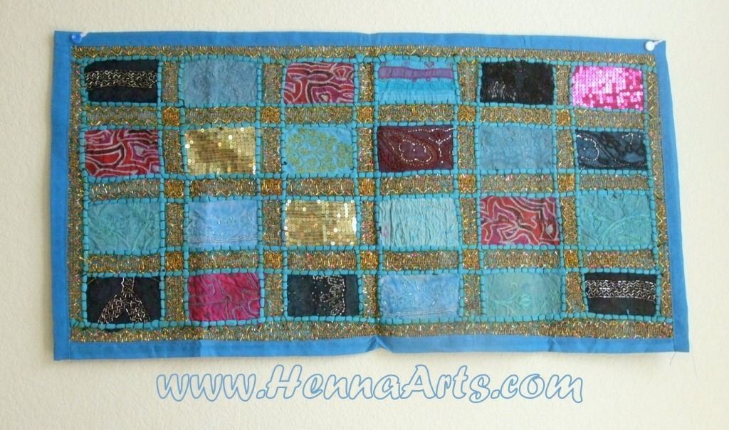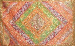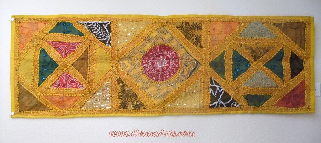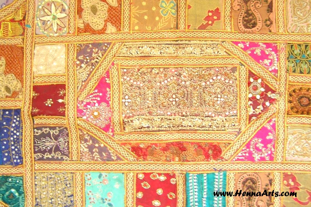 These colorful Tapestries are made in north eastern Indian state Rajasthan and Gujrat. Small pieces of embroidered fabrics are cut into specific shapes and