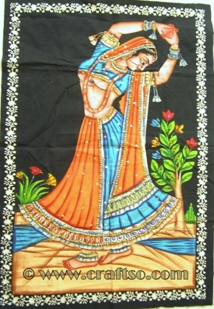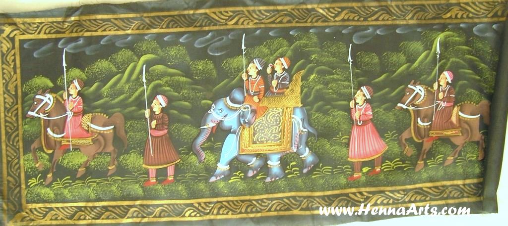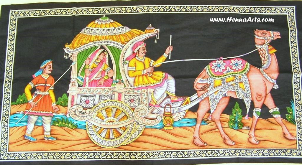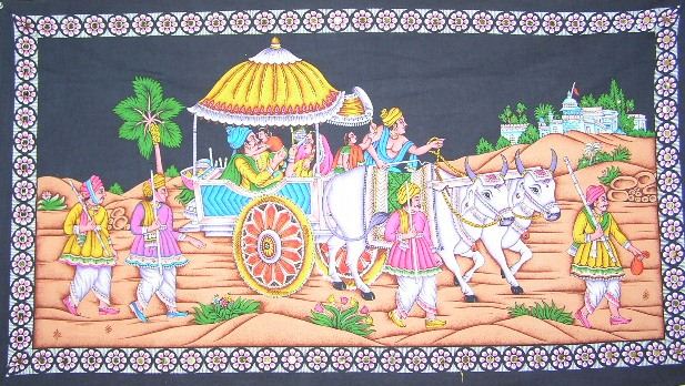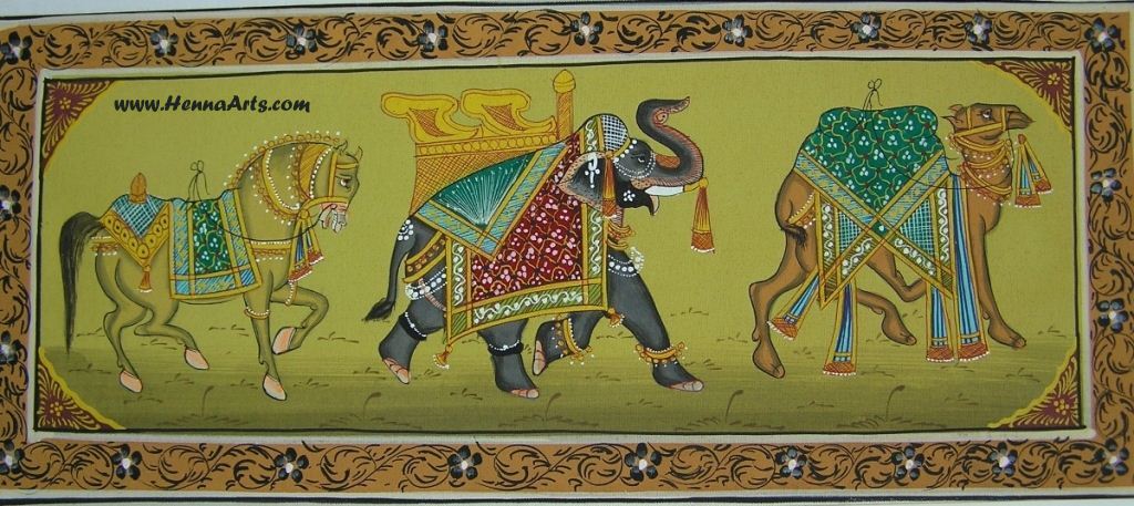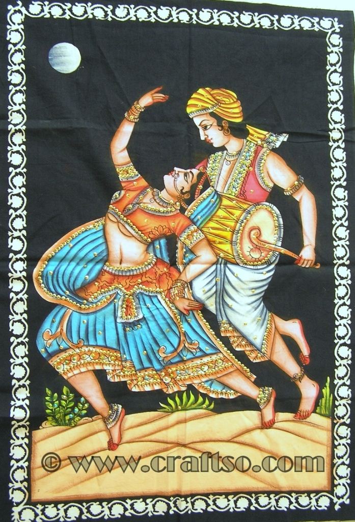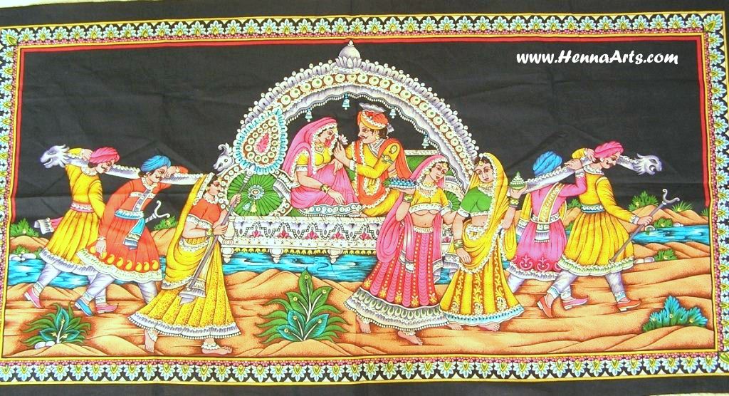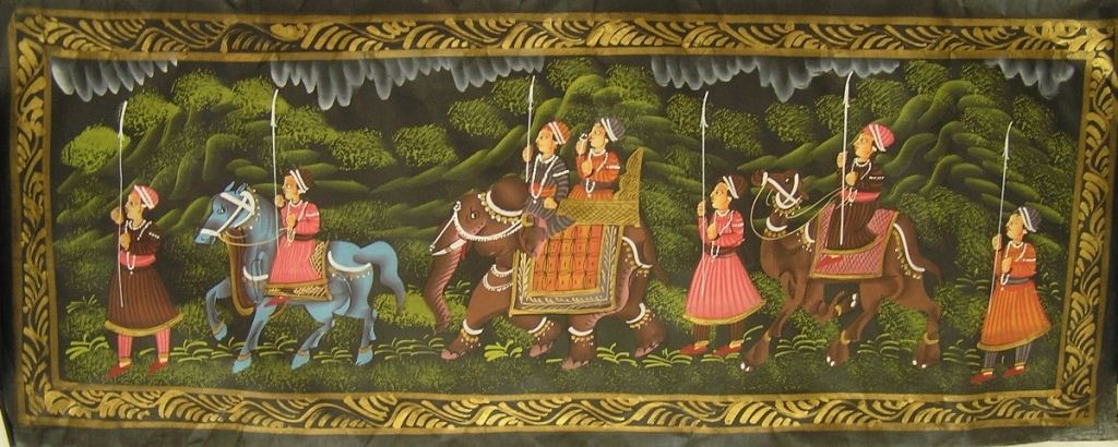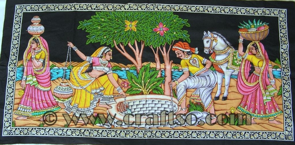 Paintings are based on daily life of old days in India. Some paintings have Indian festivals, wedding and folk dancers.