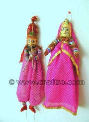 Pair wearing traditional Rajasthani dresses. Available in different colors.