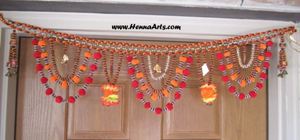 Toran is the name of a sacred or honorific gateway. They are beautiful art pieces hung on doors for welcoming guest and also to symbolize happiness and prosperity at home.